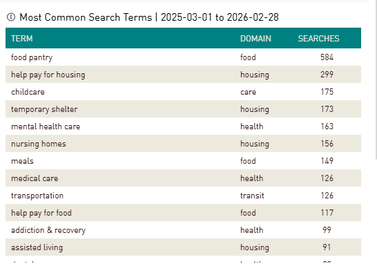 Searches by Category: 03/01/2025-2/28/2026